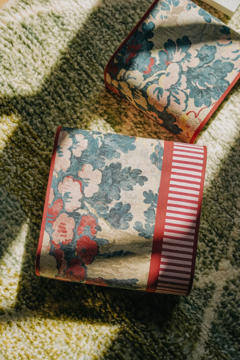 Cette applique est le fruit d'une collaboration entre Caroline Andréoni La Maison et My Leone. Elle existe en 2 tailles et en 2 versions différentes : Harlow et Harlow avec tissu à rayures blanche et rouge.