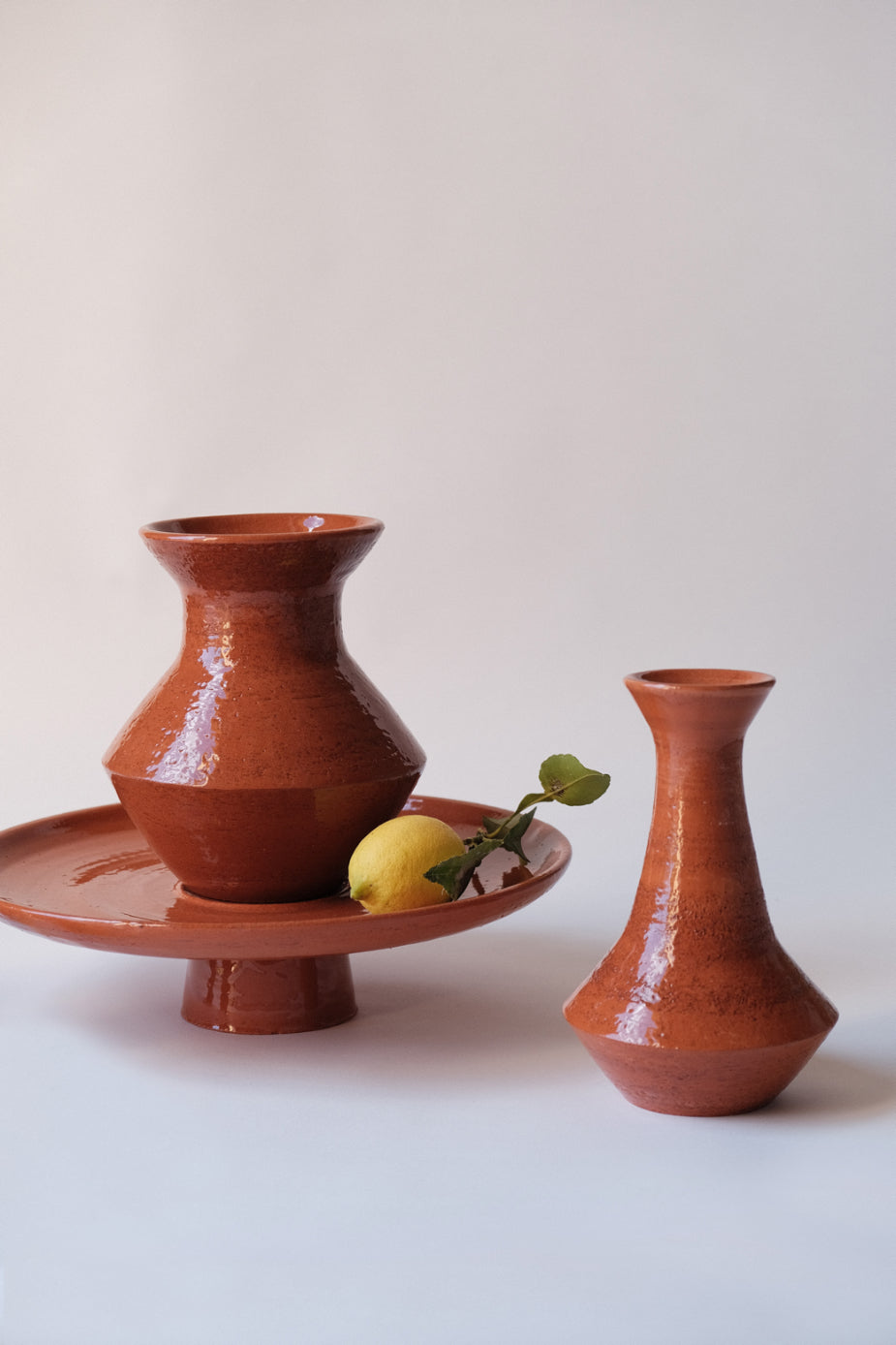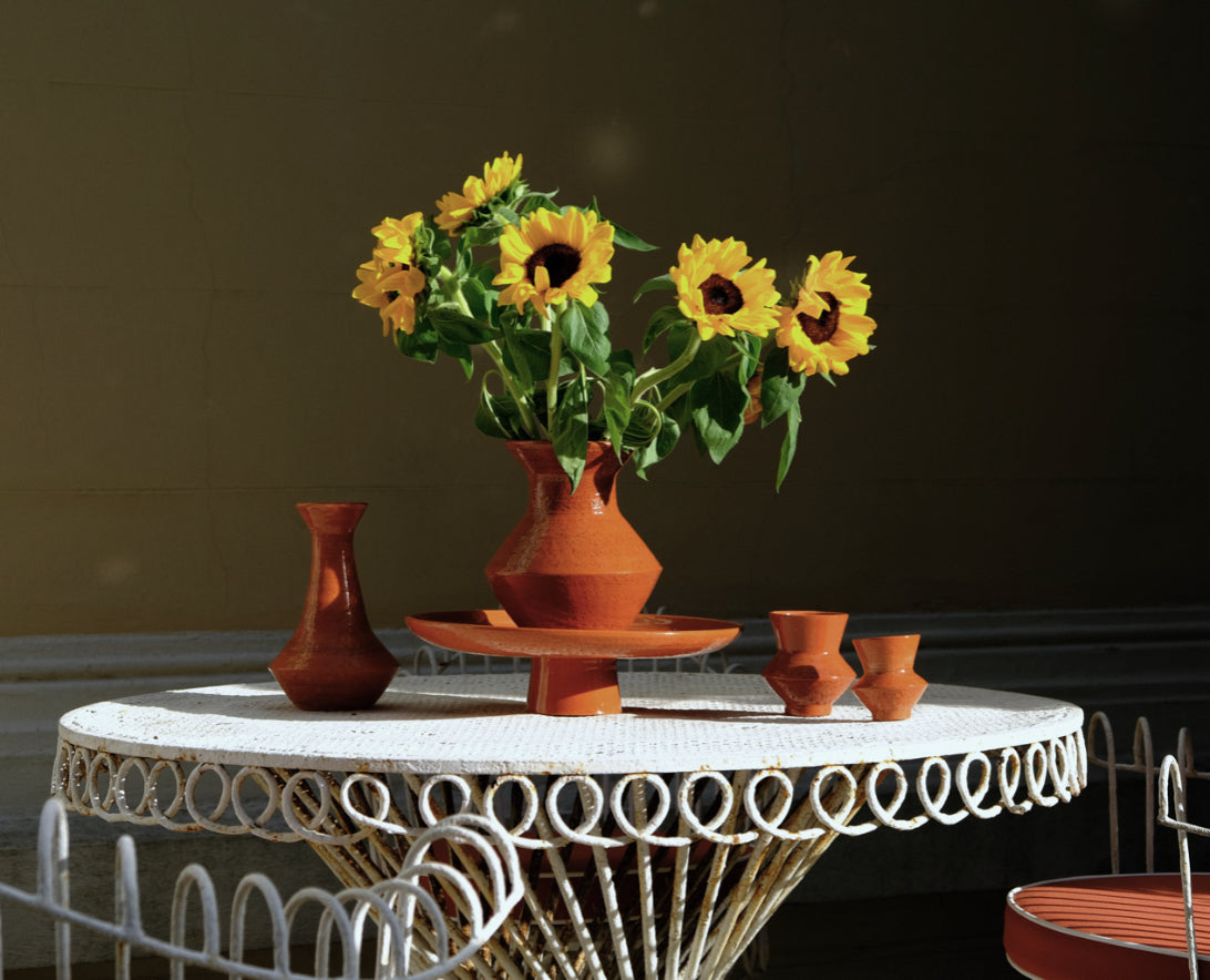 Aiello dans son atelier de Vallauris, chaque carafe est réalisée en faïence rouge chamottée . On obtient ainsi un aspect non lisse qui donne de la tenue et du caractère à la pièce. Fabriquée à Vallauris, dans le Sud de la France. Plus de détails dans la rubrique savoir-faire.