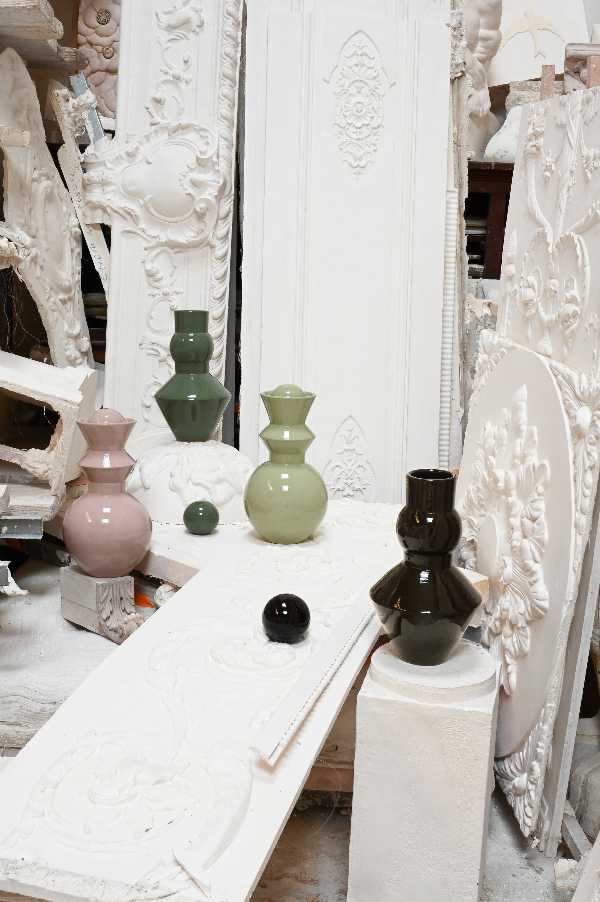 Objet sculptural par excellence, Pico se pose et se compose, agrémenté de sa sphère posée sur le haut ou déposée sur le côté, il évolue selon vos envies, se transformant de vase en sculpture et de sculpture en vase. Alternance de formes généreuses et graphiques, ils sauront vivre seuls ou en paire.