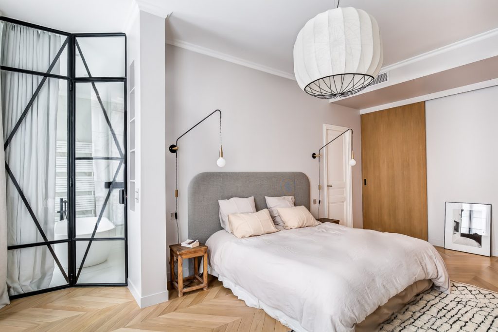 Nous avons totalement repensé la chambre parentale qui était auparavant une salle de bain et la cuisine ! Elle est désormais composée d’une chambre avec sa salle de bain attenante et son dressing.