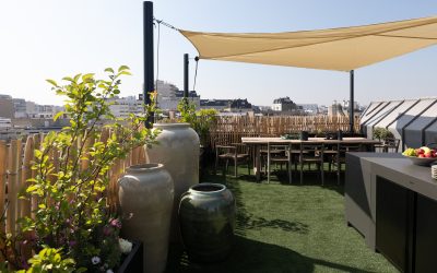 Découvrez l’aménagement du rooftop de notre showroom, un havre de verdure en plein coeur de Paris.