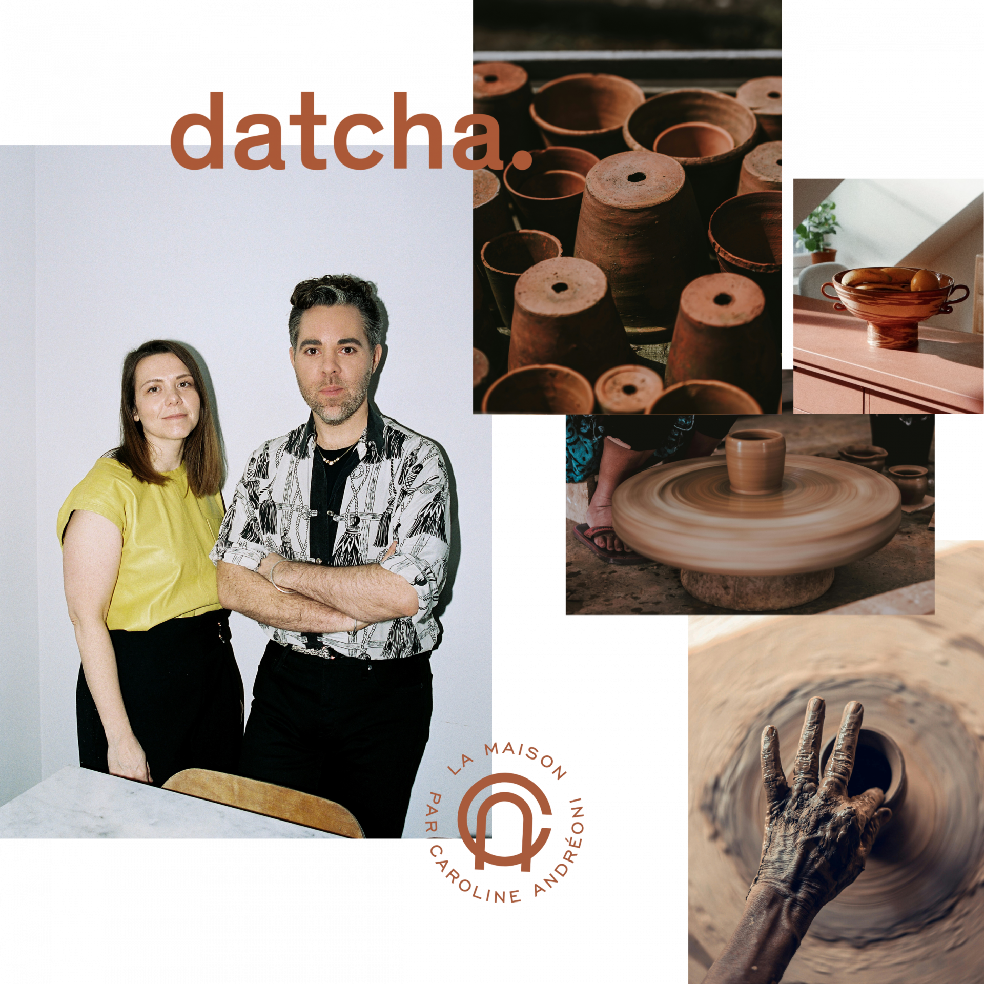 Après 10 ans passés ensemble dans l’une des plus importantes galeries d’art contemporain de Paris, Amandine Furhmann et Mériadek Caraës décidaient de changer de vie et de fonder leur studio de design nommé Datcha. Passionnés par la céramique et l’artisanat, ils partaient ainsi à la recherche d’artisans aux savoir-faire méconnus et précieux dans des petits villages autour de la Méditerranée, loin des sentiers battus et des objets standardisés proposés par les grandes enseignes de décoration.