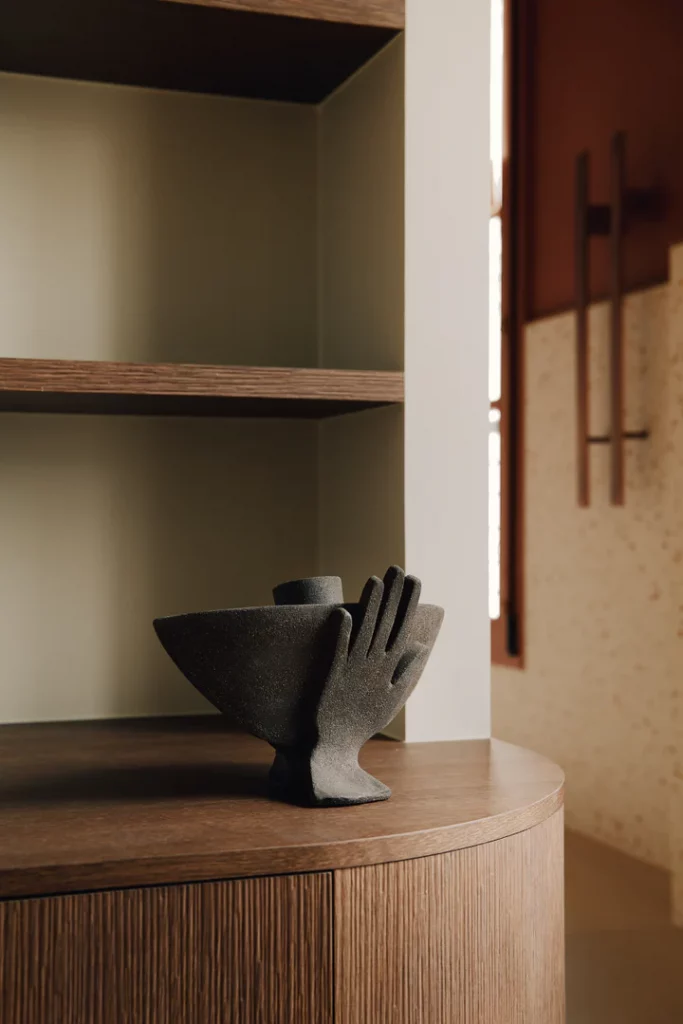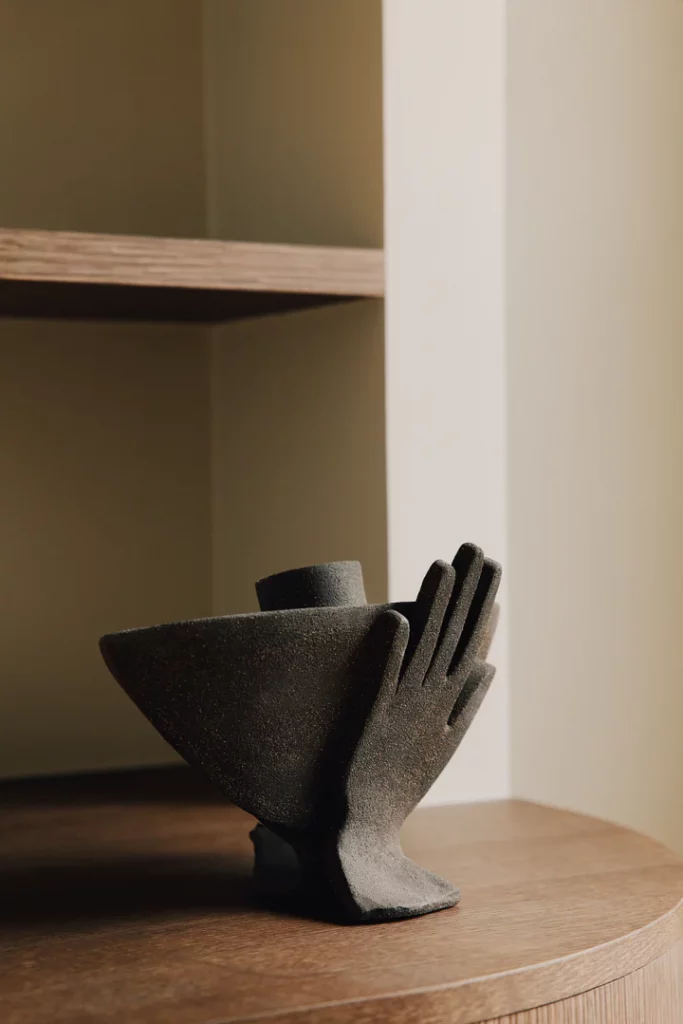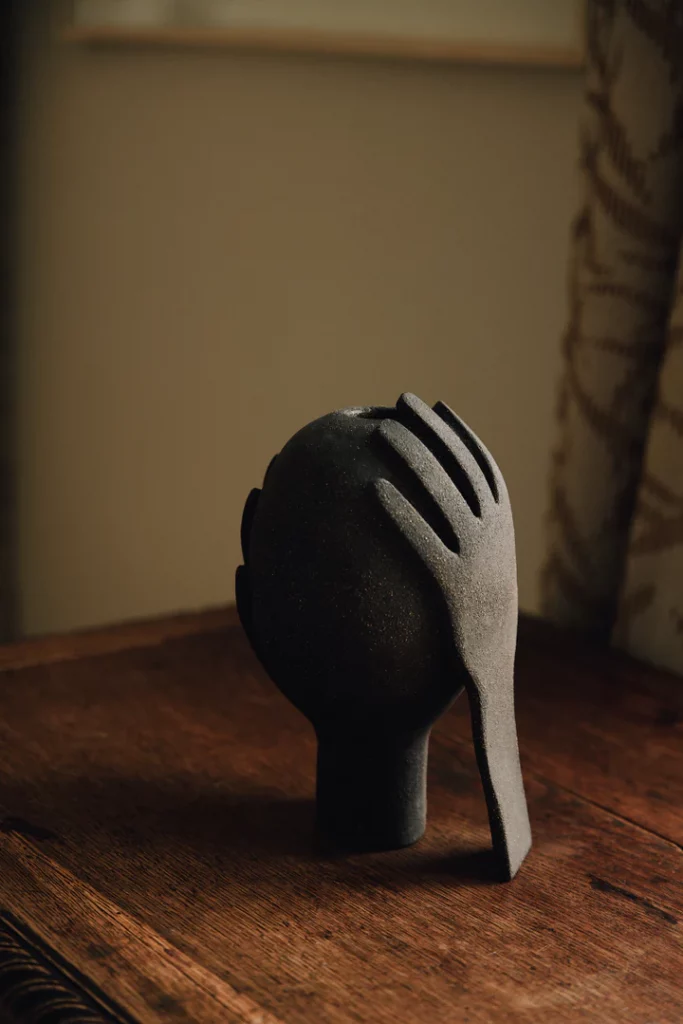 Les vases de la collection « à mains nues » évoquent la douceur, la confiance et l’amour inconditionnel. L’artiste Thalia Dalecky a voulu exprimer dans ses pièces la sensation du soutien et de consolation d’une caresse, la tendresse d’une main sur la peau, l’abandon dans l’autre jusqu’à l’acceptation de sa propre vulnérabilité. Se reposer en quelqu’un que l’on aime et baisser sa garde, se laisser porter…