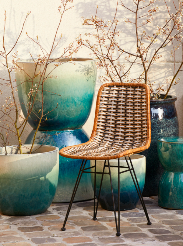 Ci-dessous des exemples de mobilier en osier faits selon la technique de la vannerie clayonnée. On apprécie beaucoup le côté naturel, doux et chaleureux de ces matières qui se marient avec du bois, du métal ou encore du lin. Elles s’associent aussi bien en intérieur qu’en extérieur avec tout type de végétation.