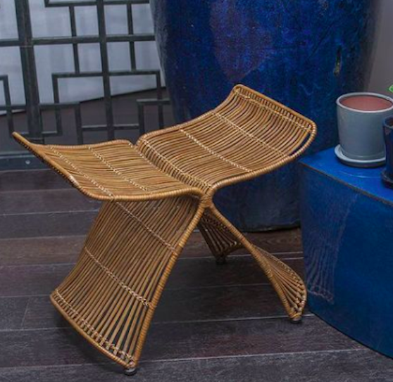 Les tabourets en rotin que nous avons choisi au showroom sont issus de la ligne Vintage de la Compagnie française de l’Orient et de la Chine qui rend hommage à l’emblématique tabouret Butterfly du designer japonais Sori Yanagi. 7 étapes de fabrication sont nécessaires pour obtenir cette finition au toucher parfait !
