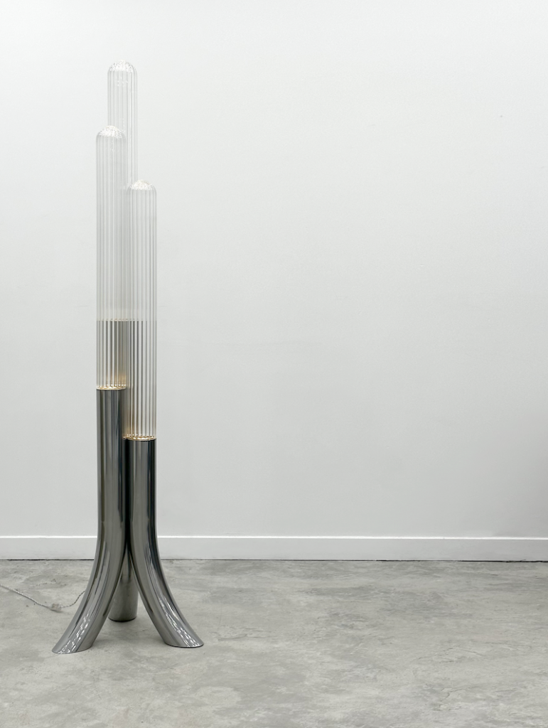 La lumière si particulière du Sud de la France est le point d’ancrage pour cette collection CACTUS. La rencontre de Mickaël avec un artisan verrier lui permet de retranscrire toutes les nuances d’oscillation et de reflet auxquels le paysage méditerranéen l’a habitué. Tous les reliefs du verre sont projetés sur l’environnement qui l’entoure. Une ode au territoire d’origine de Mickaël.