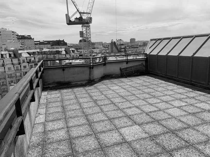 Dans cet article, nous nous arrêtons sur le projet de rénovation de la terrasse située au 9e étage de l’immeuble et bénéficiant d’une vue assez exceptionnelle sur les toits de Paris.