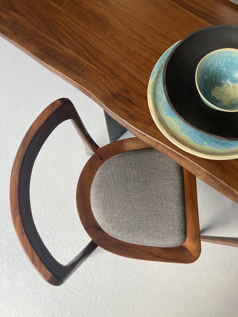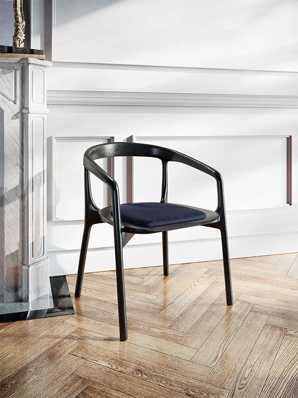 Le fauteuil de table en bois brûlé Enridis est tout en courbe et en finesse, sculpté dans le bois massif. Les créateurs souhaitaient le design d’une assise arrondie, généreuse et élégante. Le design d’Enridis est né d’un projet sur-mesure. Celui d’avoir des assises parfaitement adaptées à une table de repas Maison Saman et au décor de la maison de nos clients. Ils ont ensuite décidé de les réadapter pour une collection limitée.