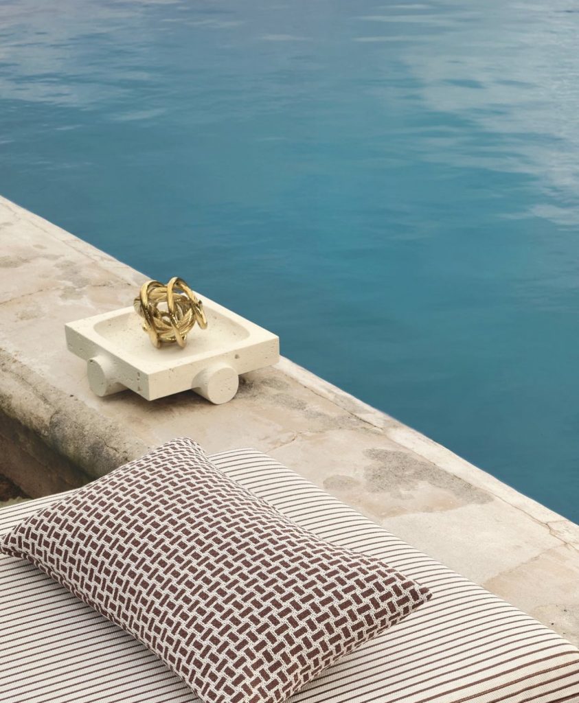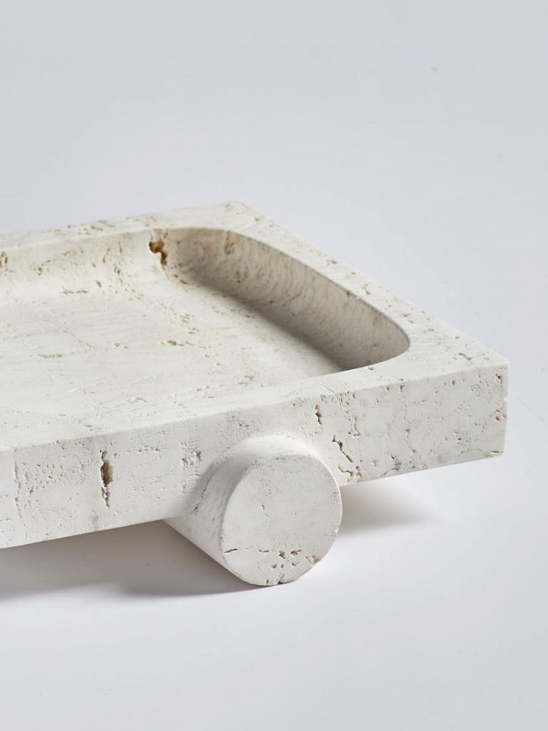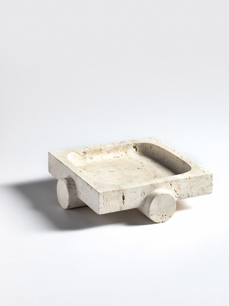 Issu de la collection Empreinte, découvrez le vide poche en travertin Tortuga disponible également en version lave noire !