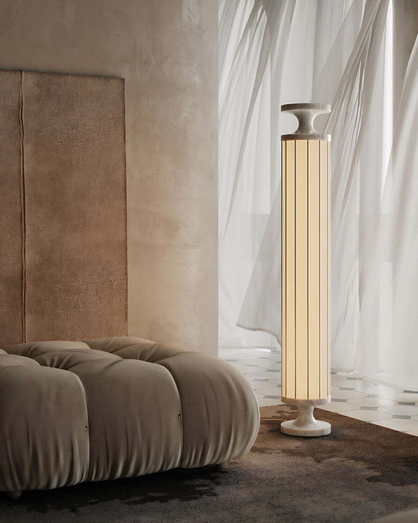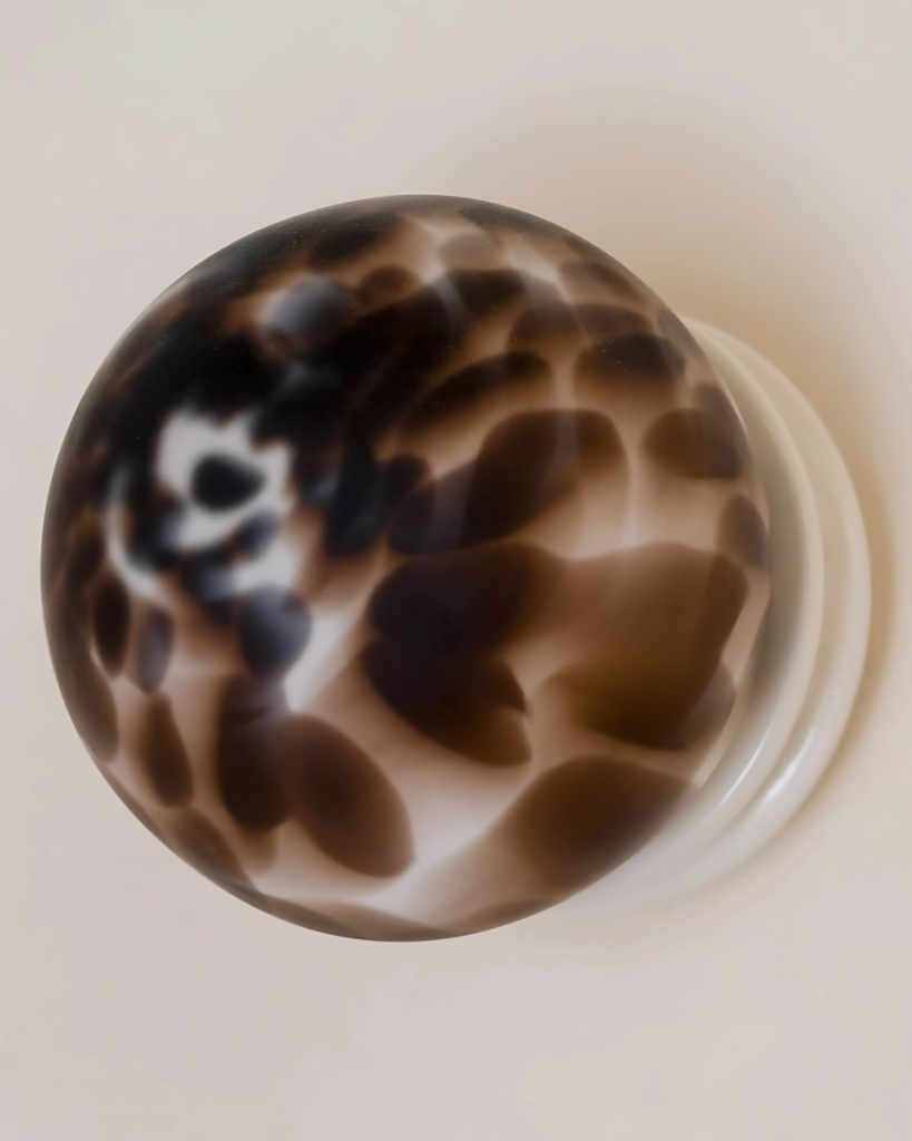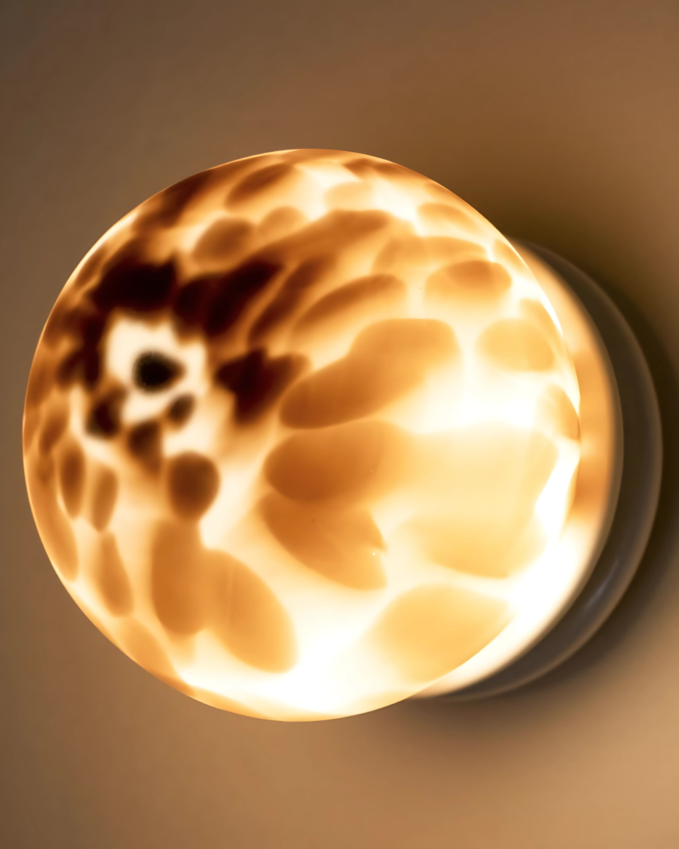Chaque pièce semble souffler une histoire à part entière, née d’un geste, d’un souffle, d’un jeu entre matière et lumière. Le verre y est travaillé comme un textile fluide, une étoffe légère qui vient habiller la lumière, tandis que la céramique et les globes, véritables parures, complètent cette composition comme des accessoires choisis avec soin.