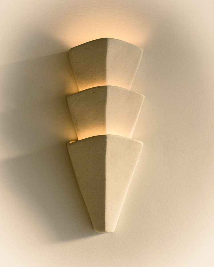 La série exclusive Tiered Sconce de Sarah Nedovic célèbre la lumière, la forme et la fonctionnalité. La répétition et la symétrie de ces formes faites à la main s’inspirent de l’expérience de Nedovic en tant que modéliste.