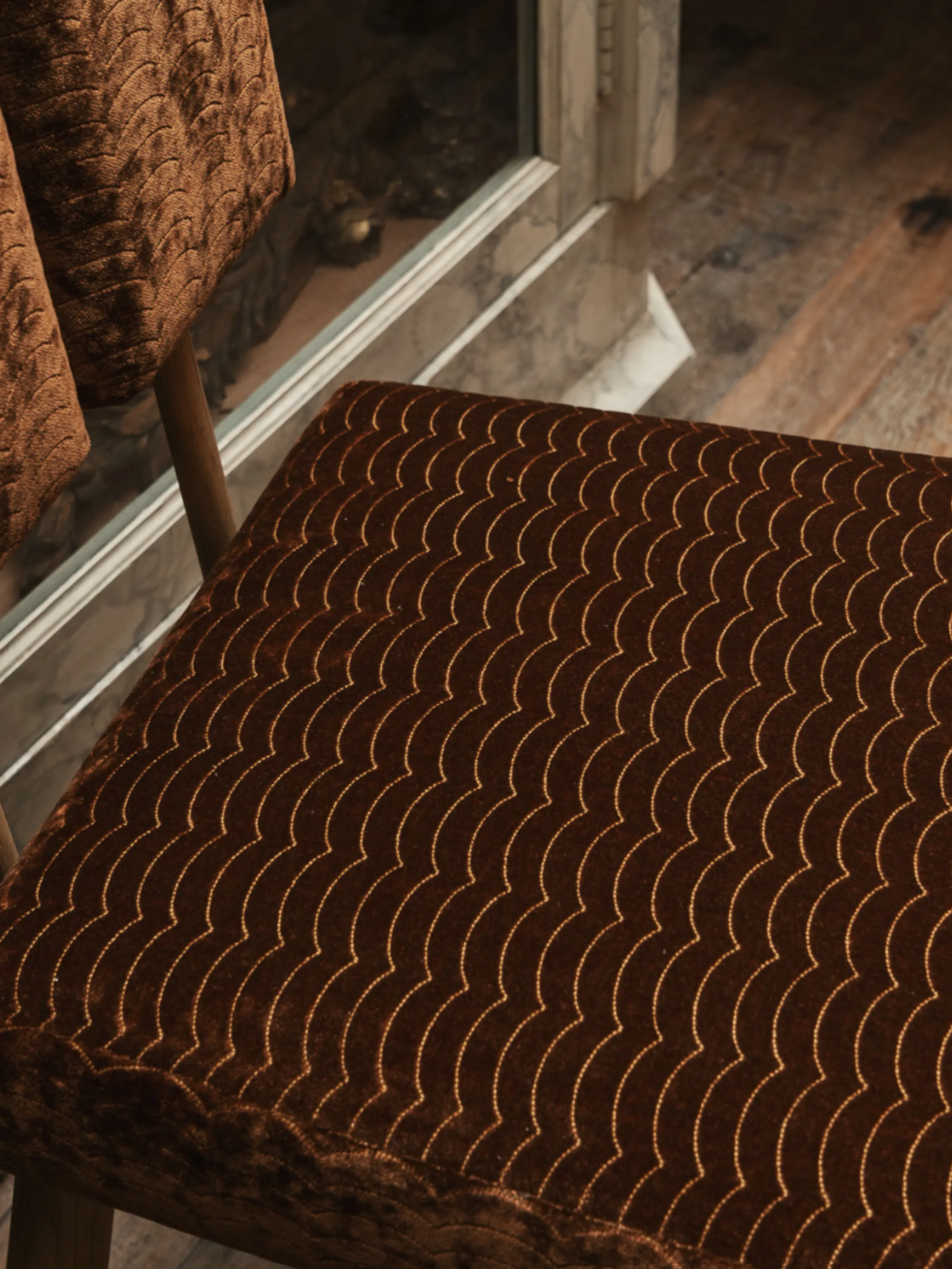 Le modèle présenté ici, habillé du tissu Ripley de chez Dedar en teinte Tobacco, est proposé chez Invisible Collection.