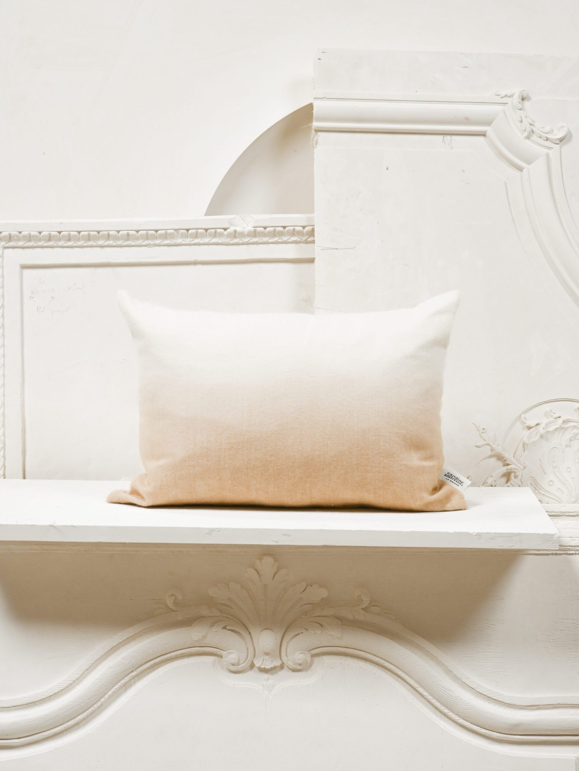 À accumuler sur un canapé ou sur un lit, ce coussin au dégradé de couleurs intemporelles et délicates est emblématique du style Caroline Andréoni. En alpaga véritable, son toucher doux et si naturel se retrouve sur un plaid assorti.