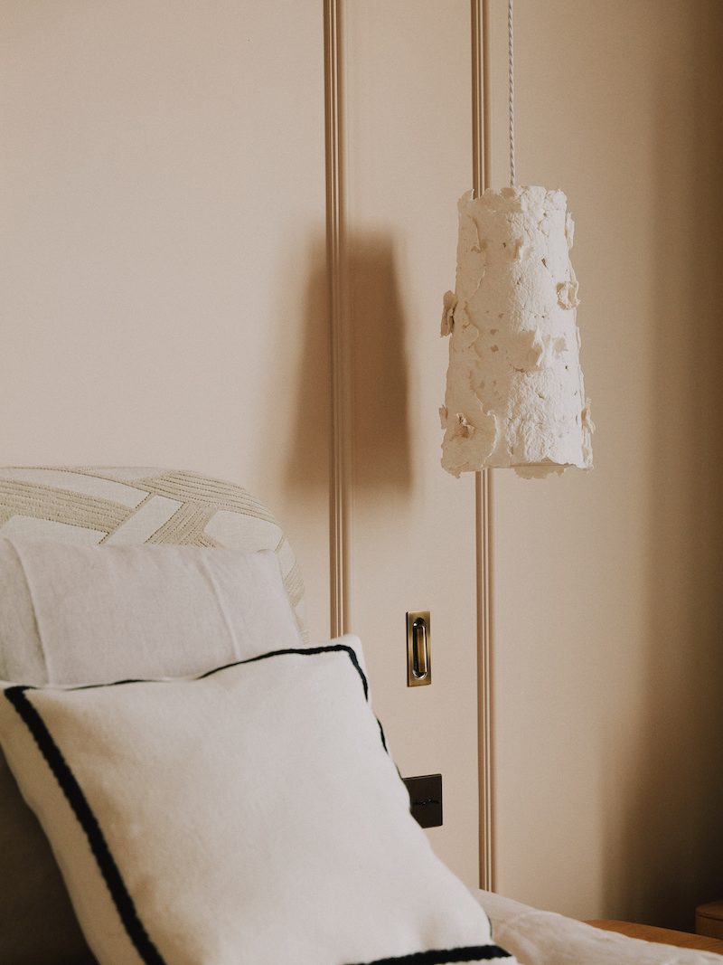 Fabriquée à partir de papier coton abaca, puis sculptée mouillée, en séchant, cette lampe est unique en son genre rendant chaque exemplaire en véritable œuvre d’art.