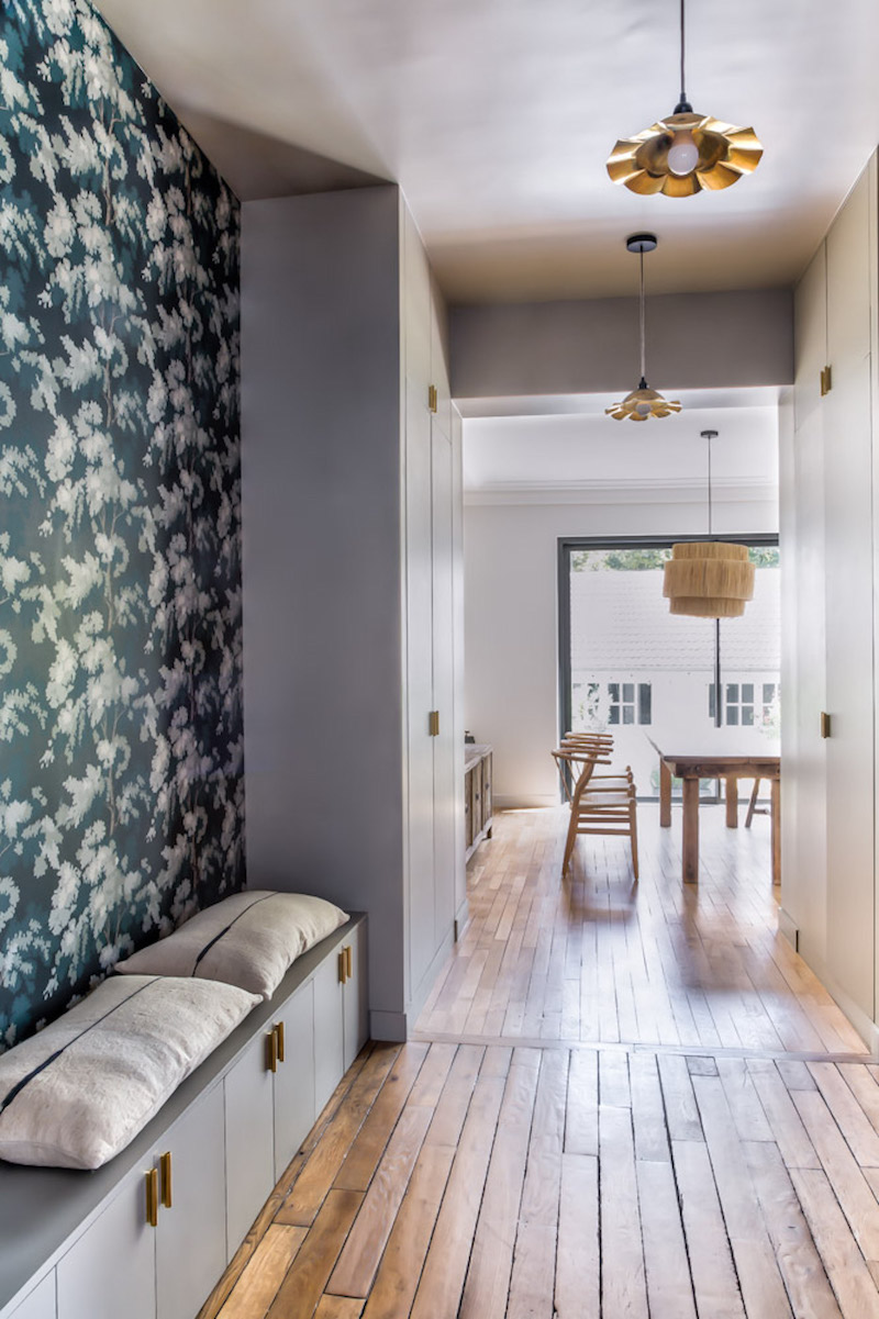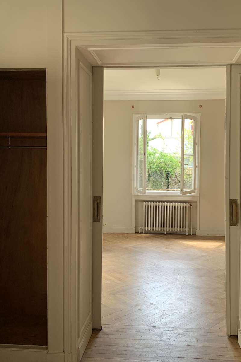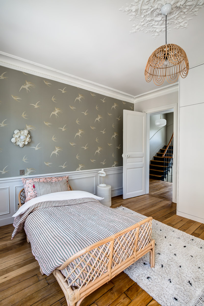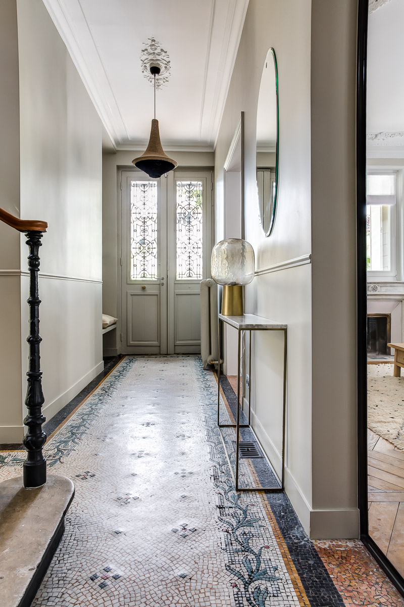 Nous avons pour cette maison ancienne essayé encore une fois de conserver la beauté de l’ancien (la mosaïque du sol de l’entrée par exemple) et d’apporter la fonctionnalité des espaces comme on aime vivre aujourd’hui avec l’ouverture d’une grande baie vitrée de la cuisine sur le jardin. A l’étage, les chambres enfants et nous avons aménagé les combles pour créer l’espace parent. Le tout dans une ambiance de matières naturelles avec le bois et des couleurs neutres.