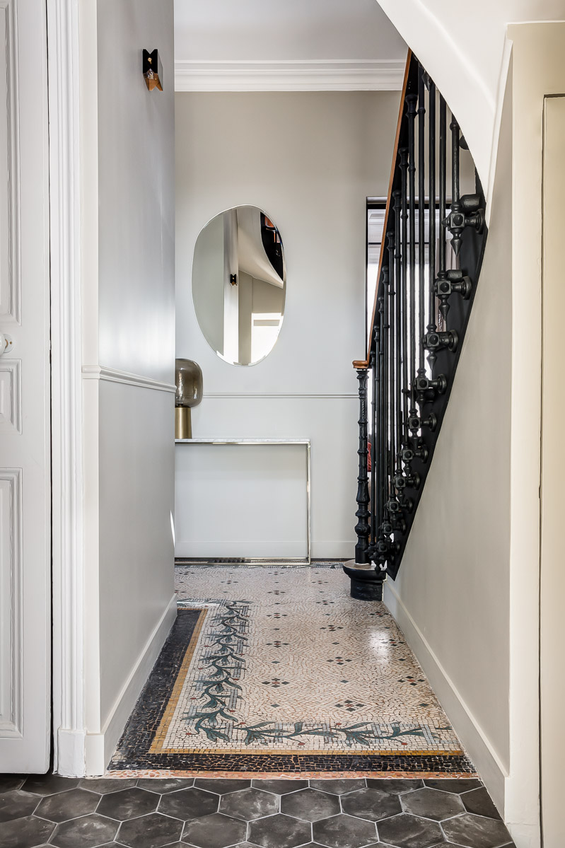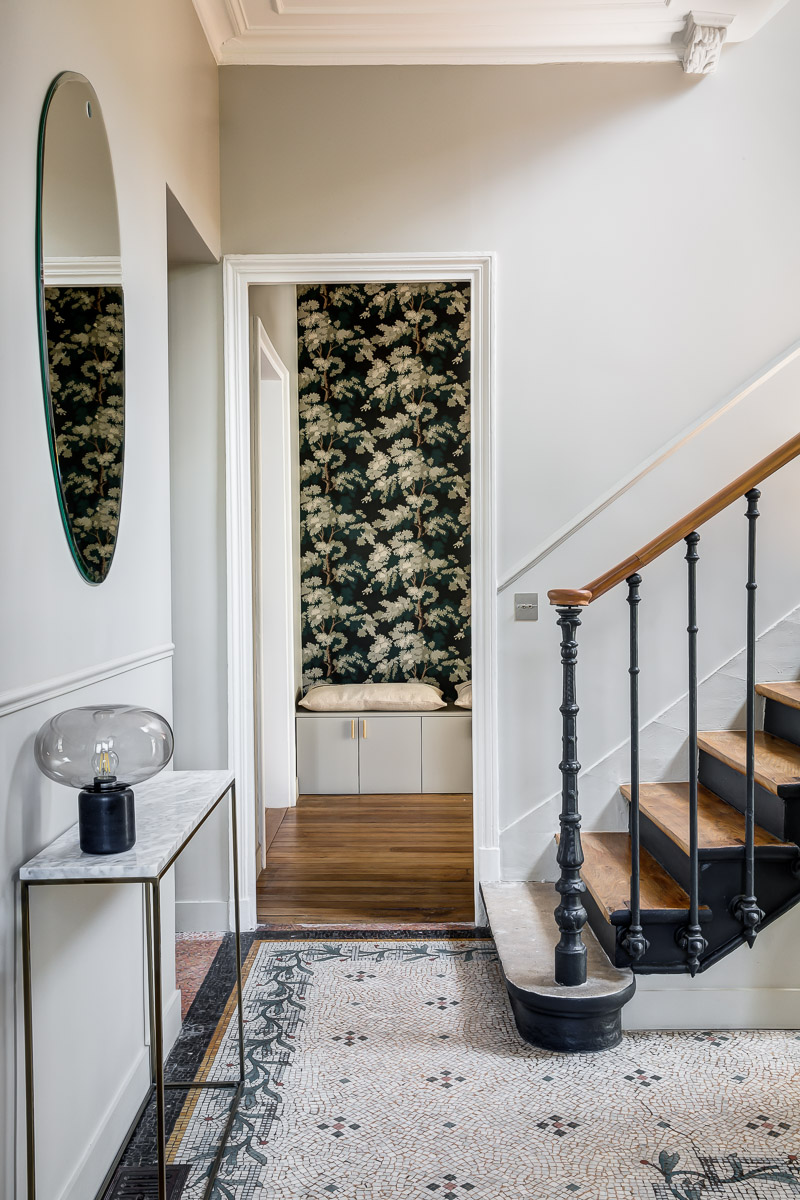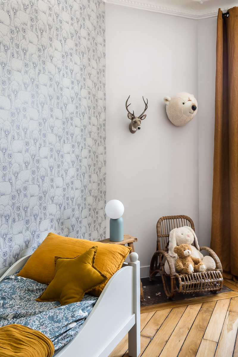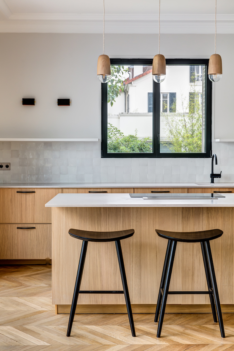 Nous avons pour cette maison ancienne essayé encore une fois de conserver la beauté de l’ancien (la mosaïque du sol de l’entrée par exemple) et d’apporter la fonctionnalité des espaces comme on aime vivre aujourd’hui avec l’ouverture d’une grande baie vitrée de la cuisine sur le jardin. A l’étage, les chambres enfants et nous avons aménagé les combles pour créer l’espace parent. Le tout dans une ambiance de matières naturelles avec le bois et des couleurs neutres.
