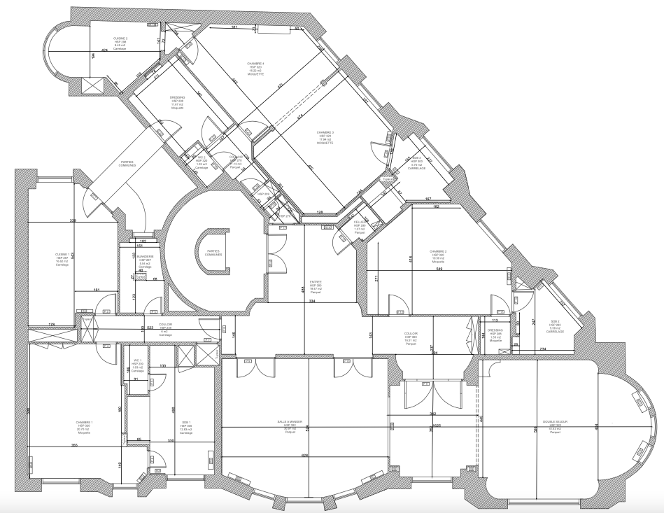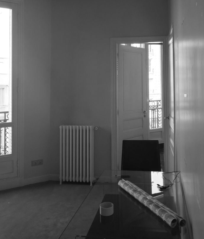 Comme vous pouvez le voir sur la photo ci-dessous, cet appartement avait un plan initial assez alambiqué et était divisé en de nombreuses petites pièces. Le challenge principal a été de mettre à nu entièrement tout l’appartement pour repenser les espaces et la circulation.