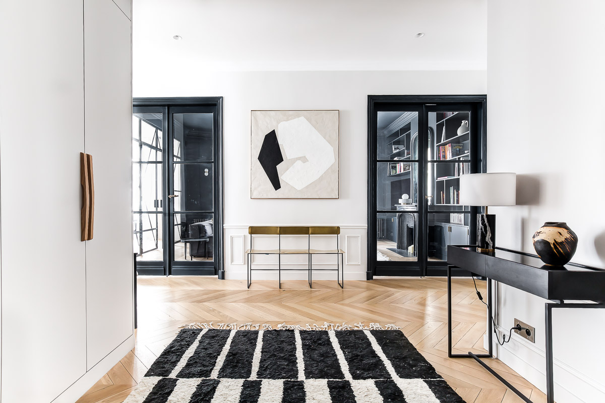 Retour sur notre réalisation Emile Augier, achevée début 2020 et certainement l’un des projets les plus à l’image du style Caroline Andréoni : de beaux espaces au style haussmannien repensés pour y accueillir une famille et sublimés grâce à une décoration contemporaine. Le résultat : un appartement de 250m2 avec beaucoup de caractère, élégant et intemporel. On vous montre la transformation ?