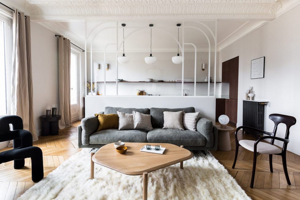 5 mois ont été nécessaires à l’équipe pour la réalisation de ce projet. Un beau challenge pour garder l’authenticité de l’appartement, le rendre design, chaleureux et spacieux.